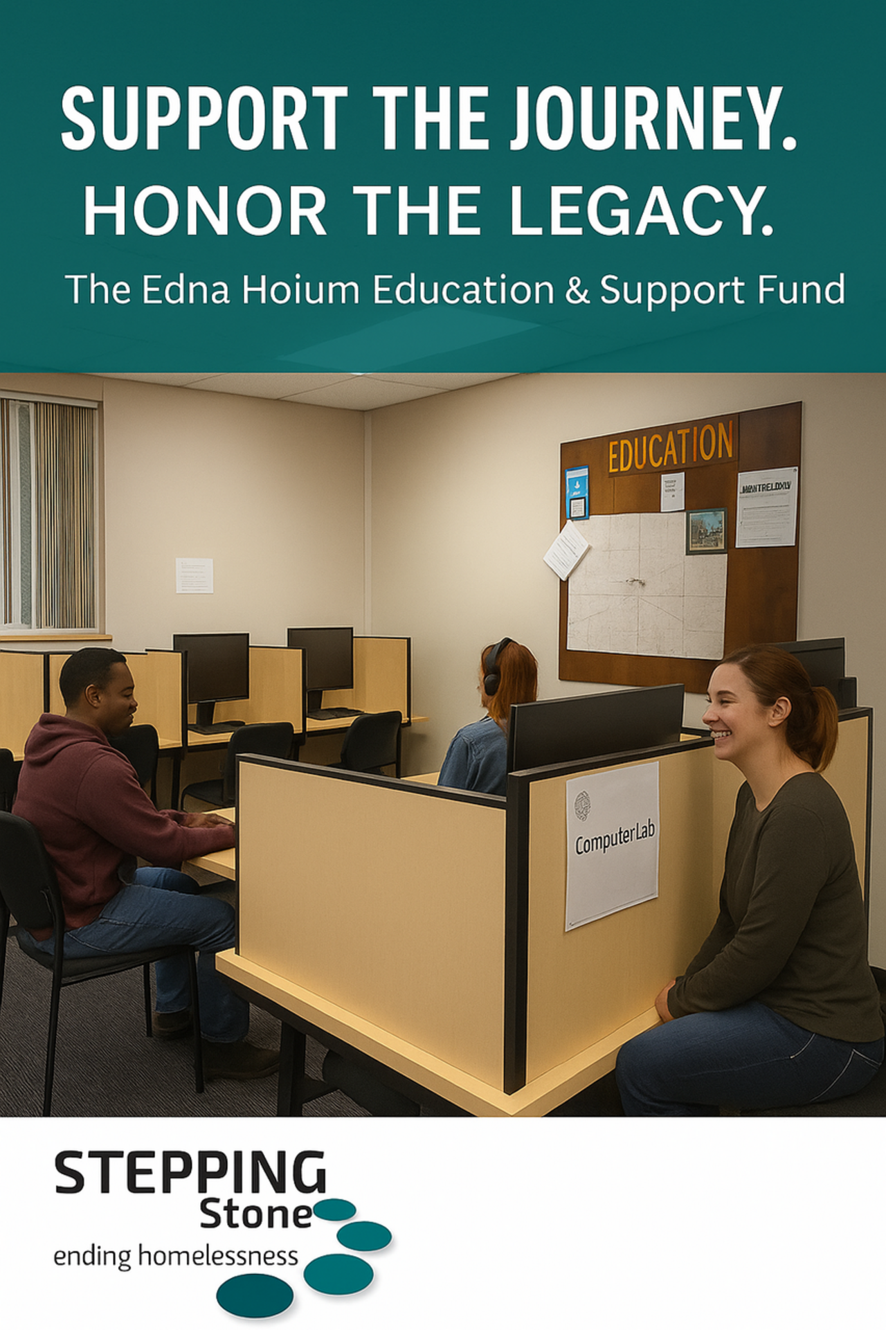 When Edna passed away in September 2018, memorial gifts poured in from those touched by her strength and service. Her family, determined to honor her legacy in a lasting and meaningful way, partnered with Stepping Stone to create the Edna Hoium Education and Support Fund.
